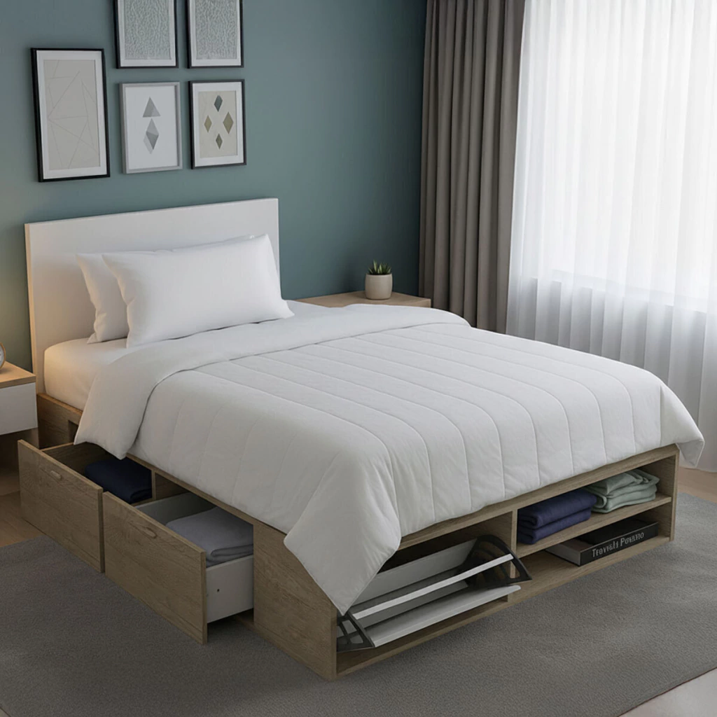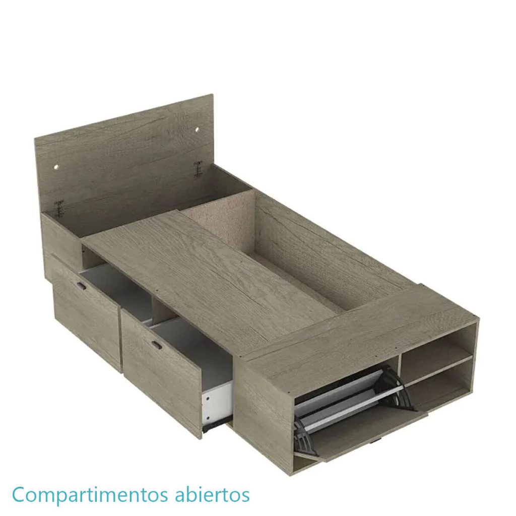 La PLATAFORMA BENETHON 1 PL Y MEDIA ademas de su diseño novedoso, es una solucion óptima para la habitación ya que aprovecha el espacio inferior con dos amplios cajones, baulera y zapatero.